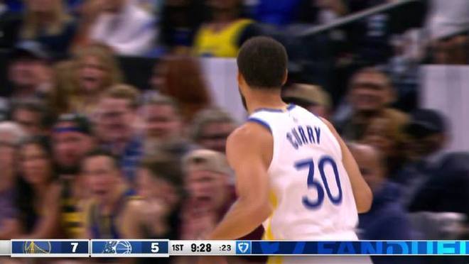 在本場對陣魔術的比賽,庫里上半場登場17分10秒,貢獻10中7的7成準星,尤其是外線三分7中5極為給力,一人三分命中數持平魔術全隊上半場總和,外加罰球4中3,從而已經轟下22分6助攻數據。